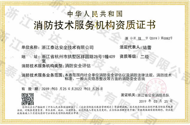 社會(huì)單位消防安全評估;消防法律法規(guī)、消防技術(shù)標(biāo)準(zhǔn)、一般火災(zāi)隱患整改等方面的消防安全咨詢。